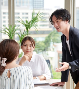 インサイド・アウトグループの仕事は、クライアントとのコミュニケーションが基本。グループ各社に所属する社員たちは「メディア総合職」として、日々多くのお客様と向き合っています。